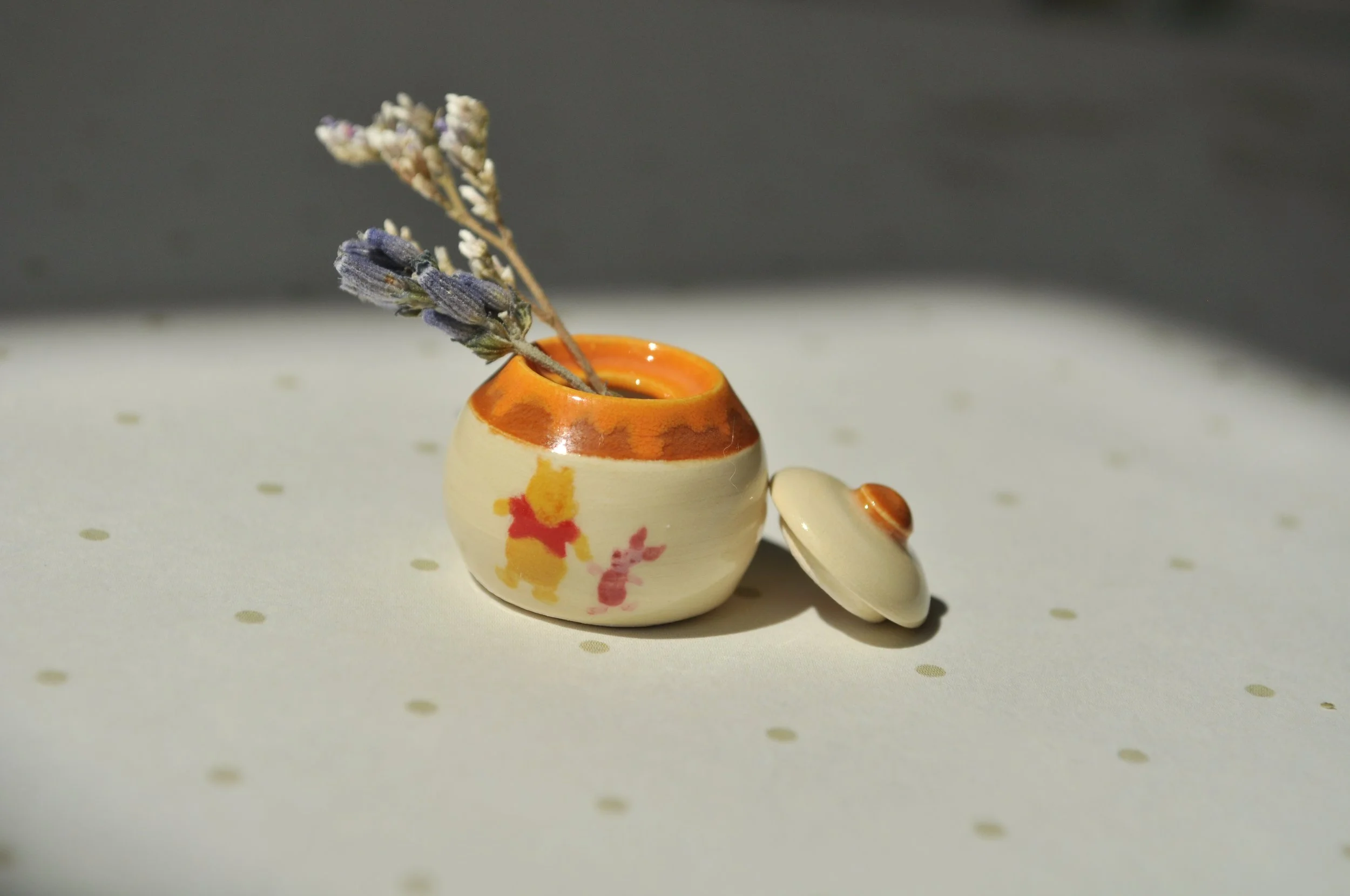 Each pot is unique and one of a kind. They’re perfect as a gift, trinket or dollhouse collectible. The average height of each of our pots is between 1.5-2cm.